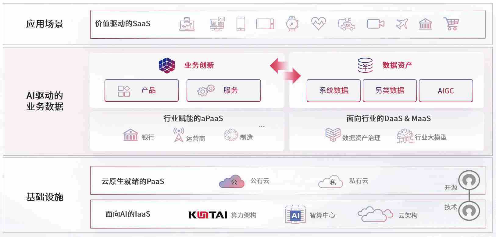 数字时代,,,围绕企业数字化转型的关键要素,,,,NG大舞台数码开创性的提出数云融合战略和技术体系框架,,,,着力在云原生、、、数字原生、、AI原生和信创产业上架构产品和服务能力,,,,为处在不同数字化转型阶段的快消零售、、汽车、、、、金融、、医疗、、政企、、、、教育、、、、运营商等行业客户提供泛在的敏捷IT能力和融合的数据驱动能力,,,构建跨界融合创新的数字业务场景和新业务模式,,,助力企业级客户建立面向未来的核心能力和竞争优势,,,,全面推动社会的数字化、、、智能化转型升级。。。。